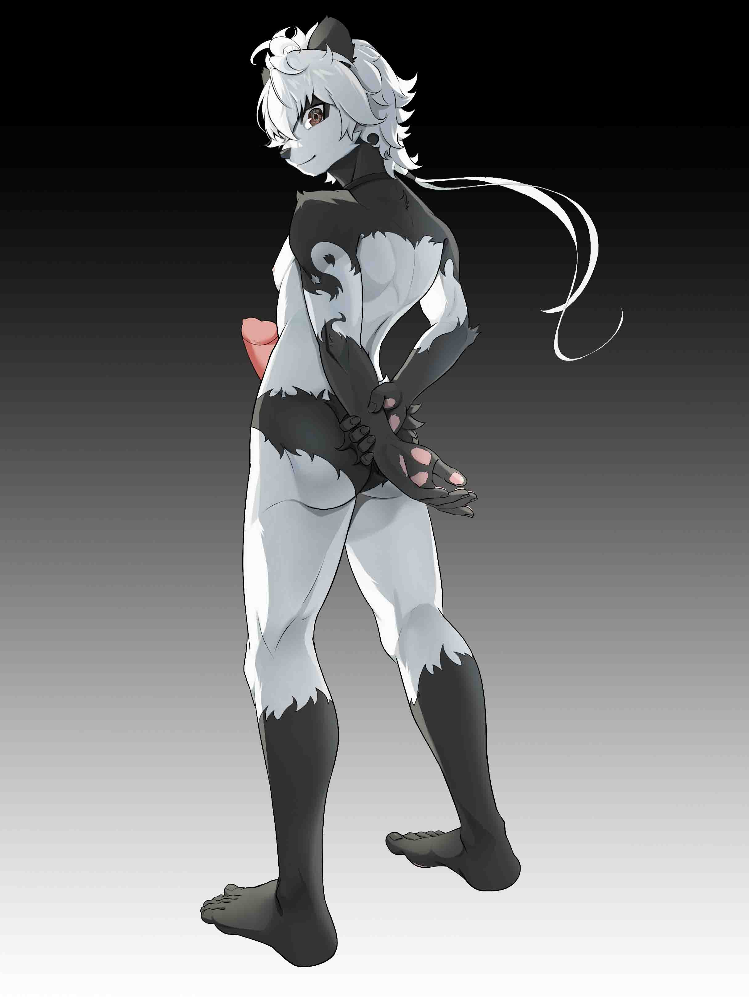 缩短了一些鼻子的长度,以及日常把眼睛往下调。再加上复制了兽设图中的阴茎,让这张图显得有点小俏皮。
